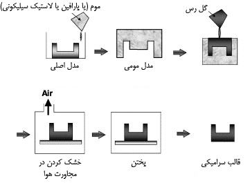 ۳-۳- ریخته گری با قالب مومی (پارافین یا سیلیکون رابر)